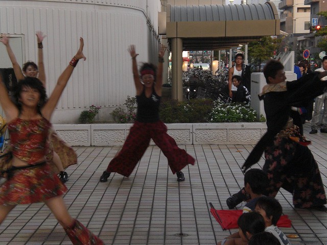 もらった手拭いをおでこに巻いて、暑さに負けない熱い踊りを